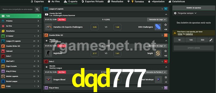 O dqd777 oferece uma grande seleção de opções de apostas em e-sports com probabilidades competitivas